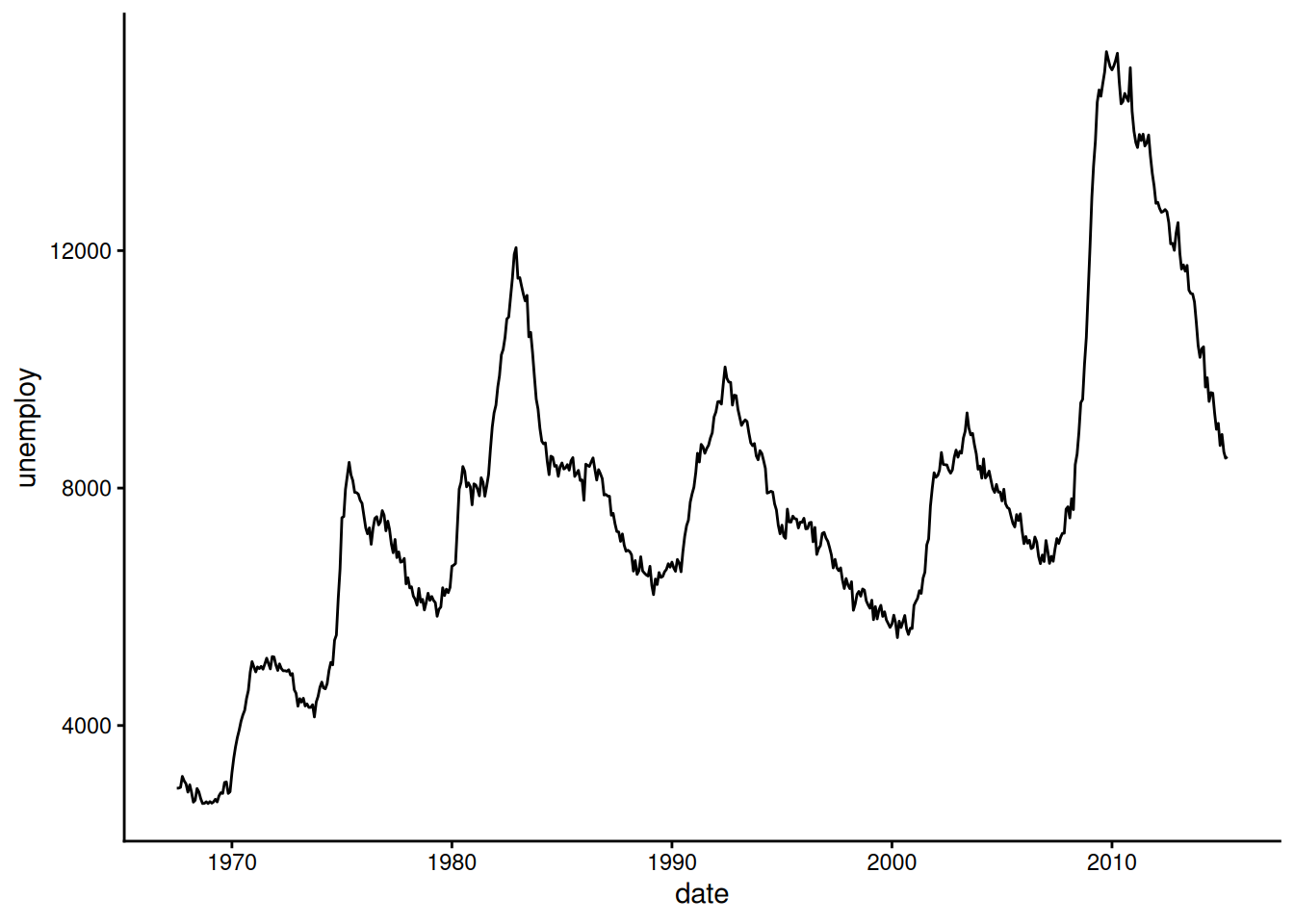 Using this built-in theme has changed many visual aspects of the graph, including changing the plot background color, adding axis lines, and removing the internal grid lines. If you look very closely, however, the axis tick labels are still a slight grey. We can use the theme() function to further customize the appearance and change this. In this case, we’ll make the axis text elements have a black color.