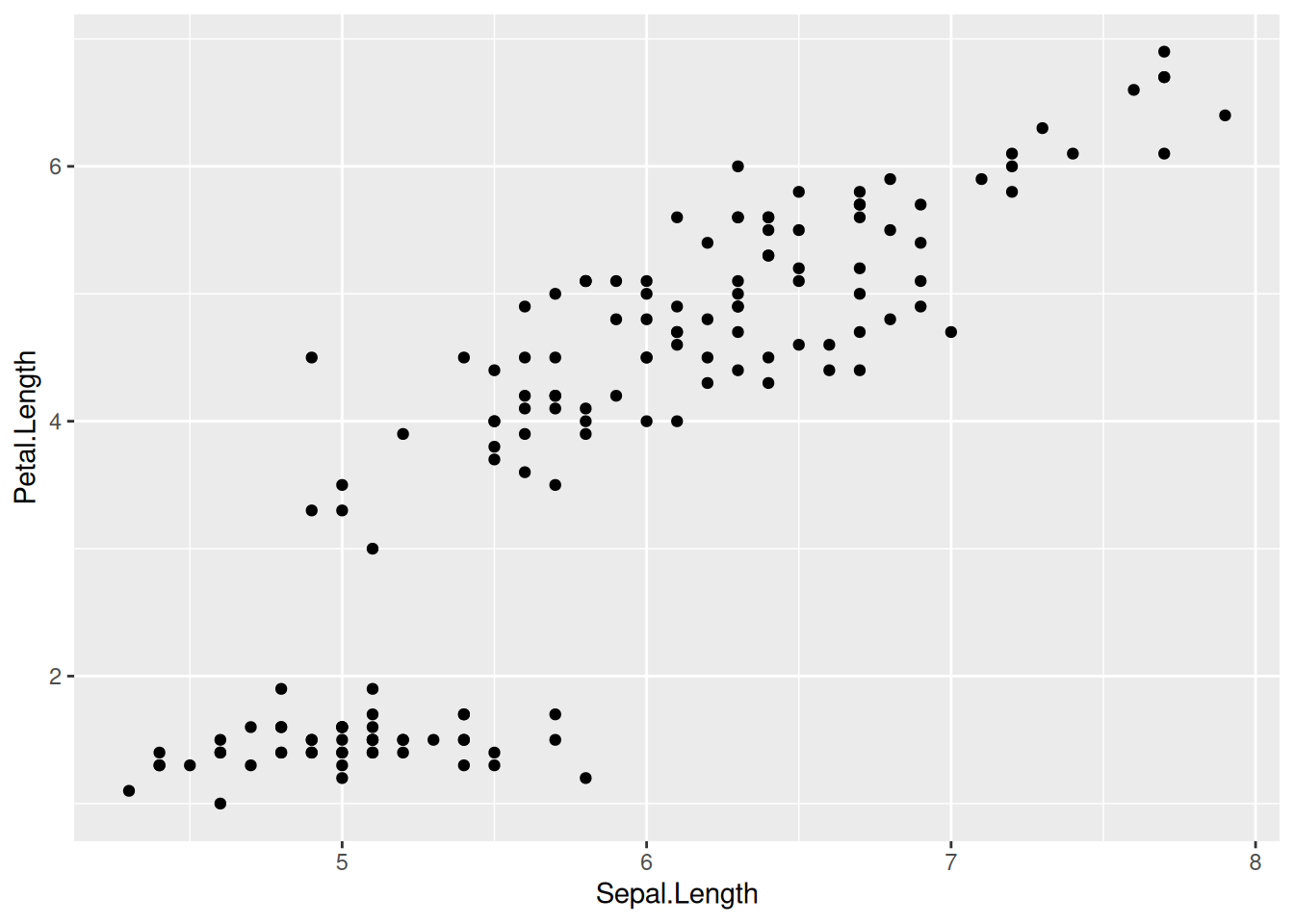 ggplot(iris, aes(x = Sepal.Length, y = Petal.Length)) +